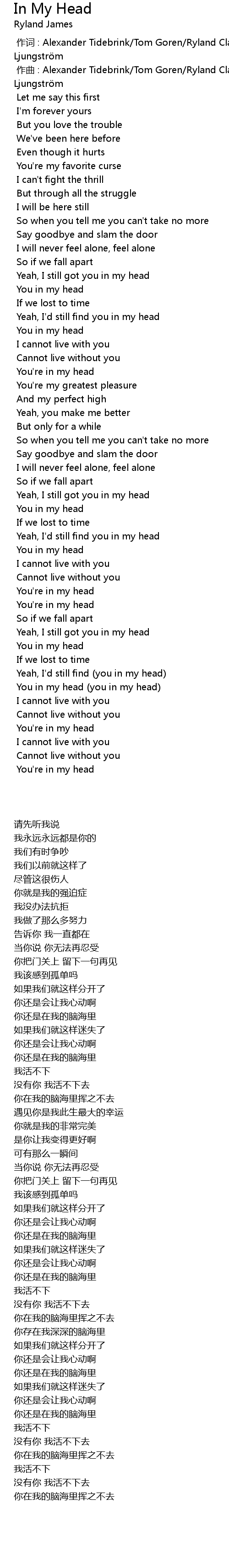 | [01:08.377] | Yeah, I' d still find you in my head |