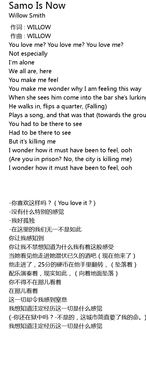 | [00:00.00] | zuò cí : WILLOW |