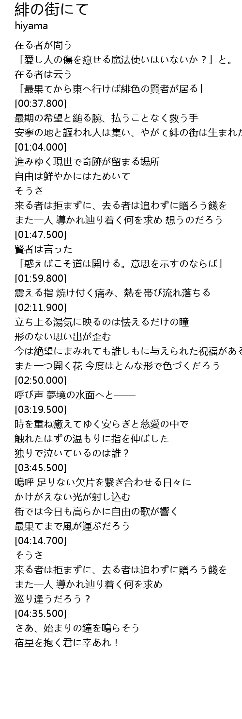 | [00:51.375] | 安寧の地と謳われ人は集い、やがて緋の街は生まれた |