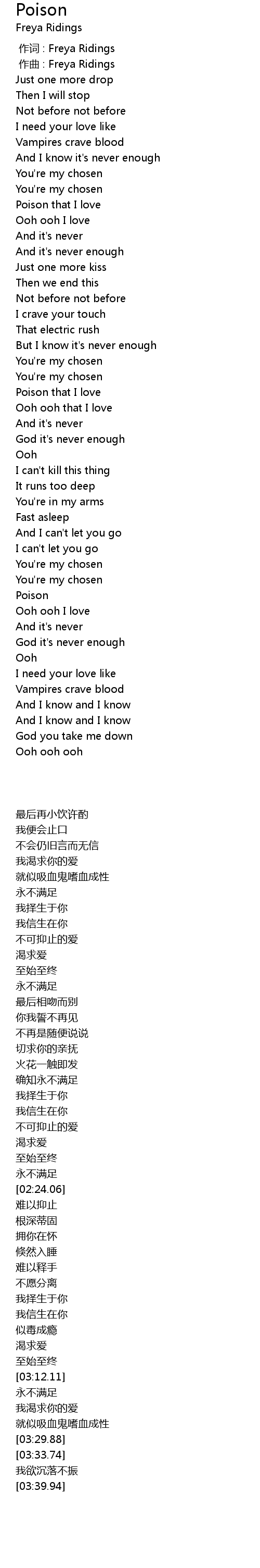 | [00:01.00] | zuò qǔ : Freya Ridings |