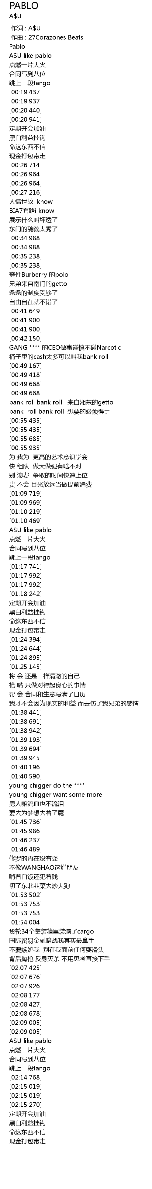 | [00:00.000] | 作词 : A$U |