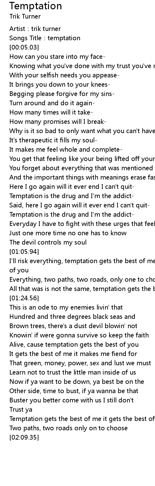 | [01:34.41] | Alive, cause temptation gets the best of you |
