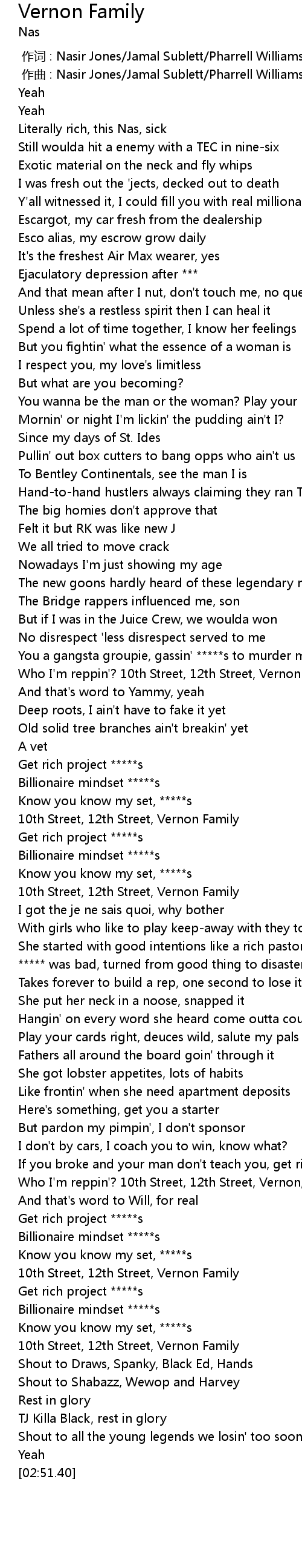 | [00:00.00] | 作词 : Nasir Jones/Jamal Sublett/Pharrell Williams |