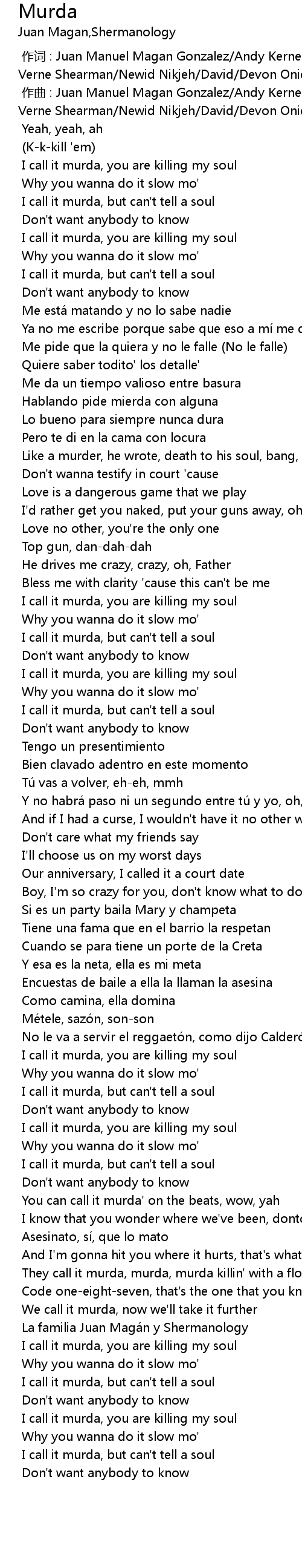 | [00:22.37] | I call it murda, but can' t tell a soul |