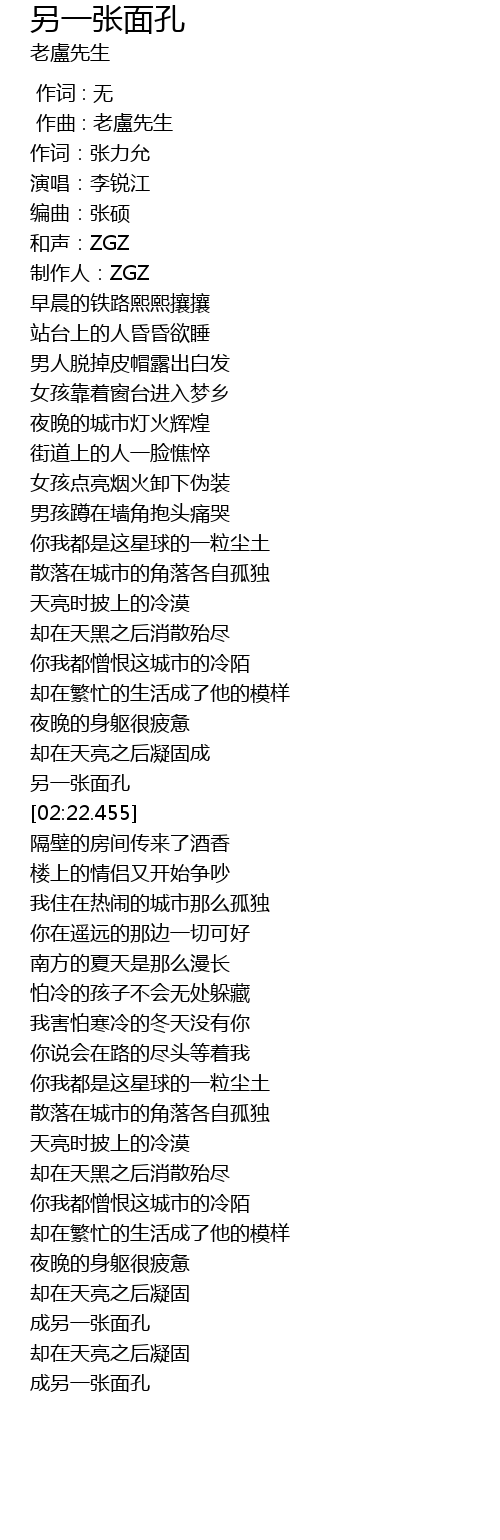 | [02:12.383] | lìng yī zhāng miàn kǒng |