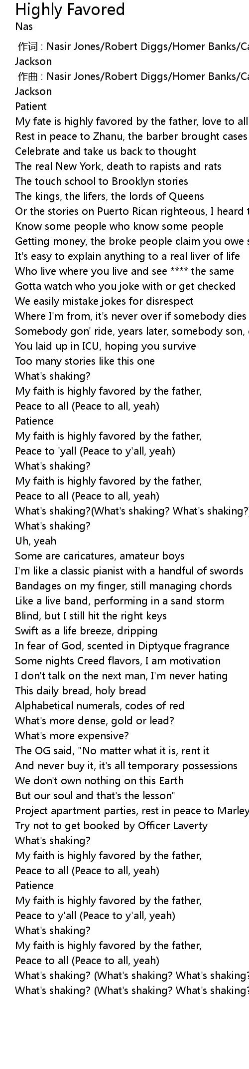 | [00:00.00] | zuò cí : Nasir Jones Robert Diggs Homer Banks Carl Hampton Raymond Jackson |