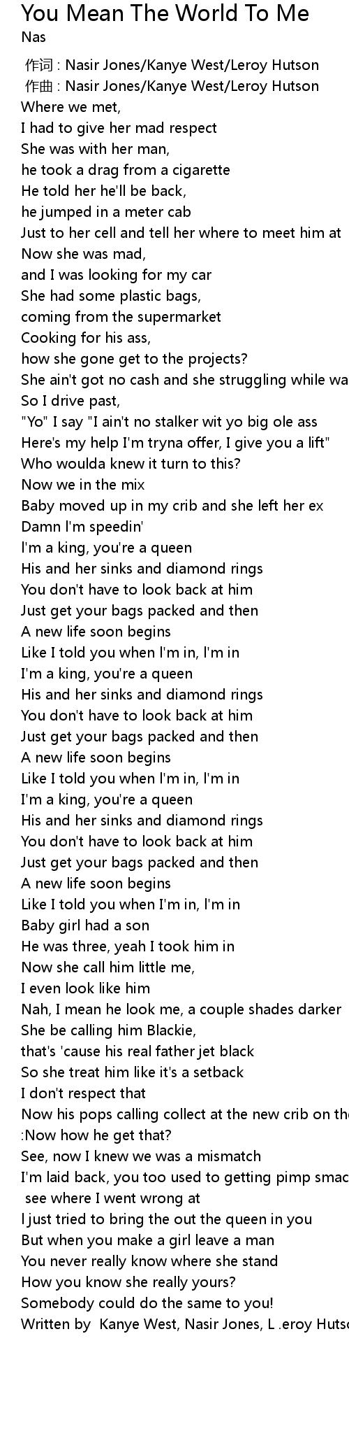 | [00:01.000] | 作曲 : Nasir Jones/Kanye West/Leroy Hutson |