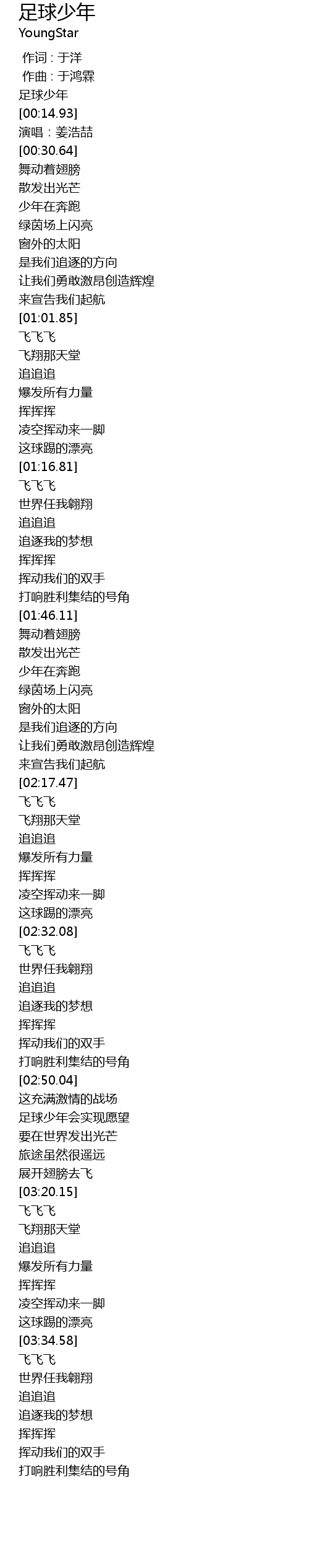 | [02:58.19] | zú qiú shào nián huì shí xiàn yuàn wàng |