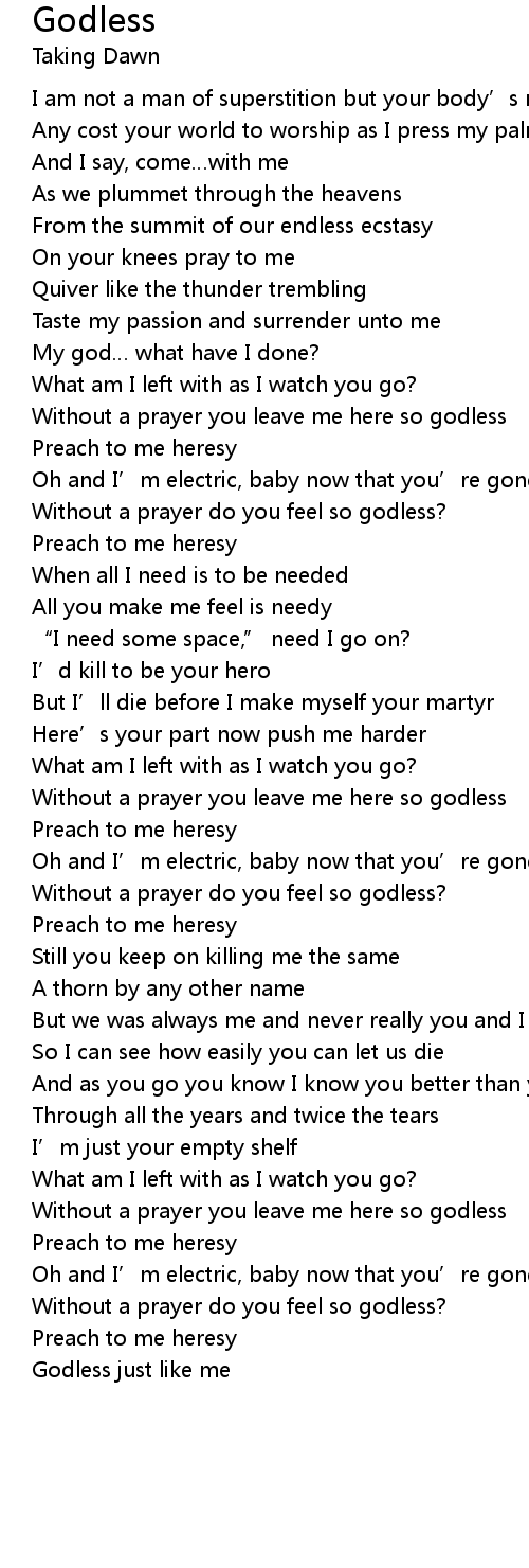 | Without a prayer you leave me here so godless | |