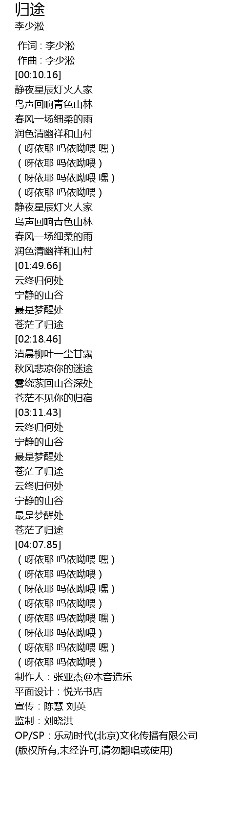 | [05:17.98] | (版权所有,未经许可,请勿翻唱或使用) |