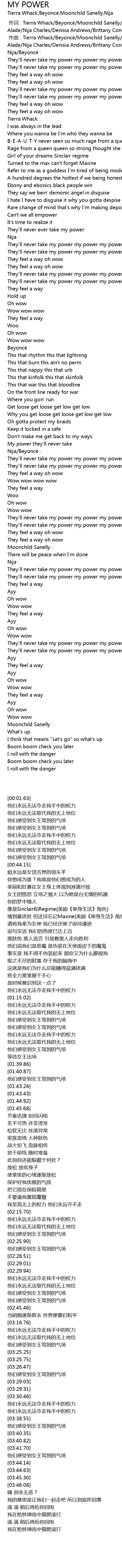 | [02:34.65] | They' ll never take my power my power my power |
