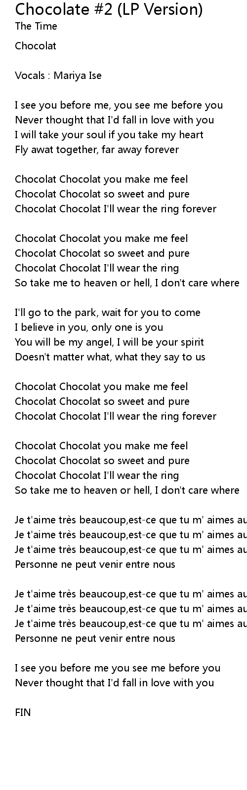 | Chocolat Chocolat you make me feel | |