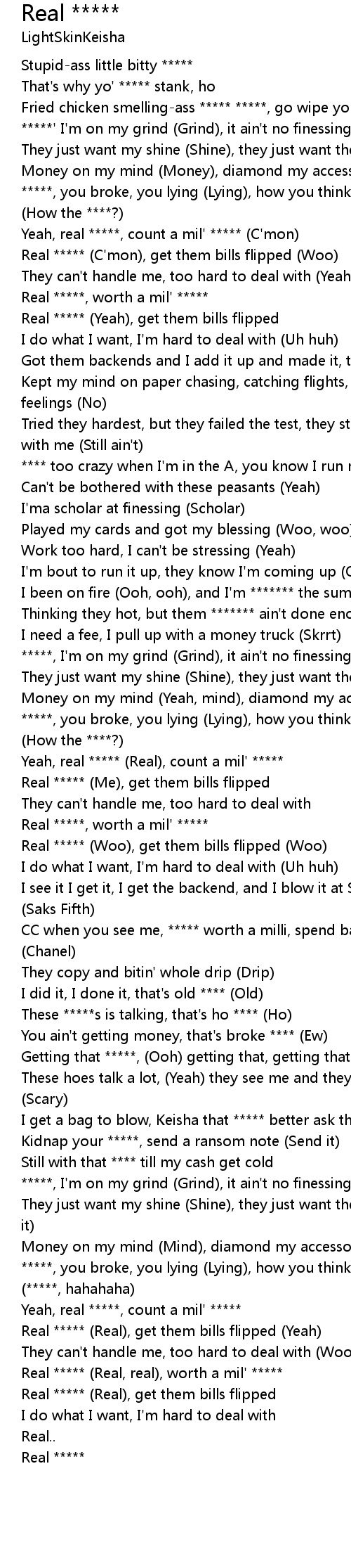 Yeah, real *****, count a mil' ***** |