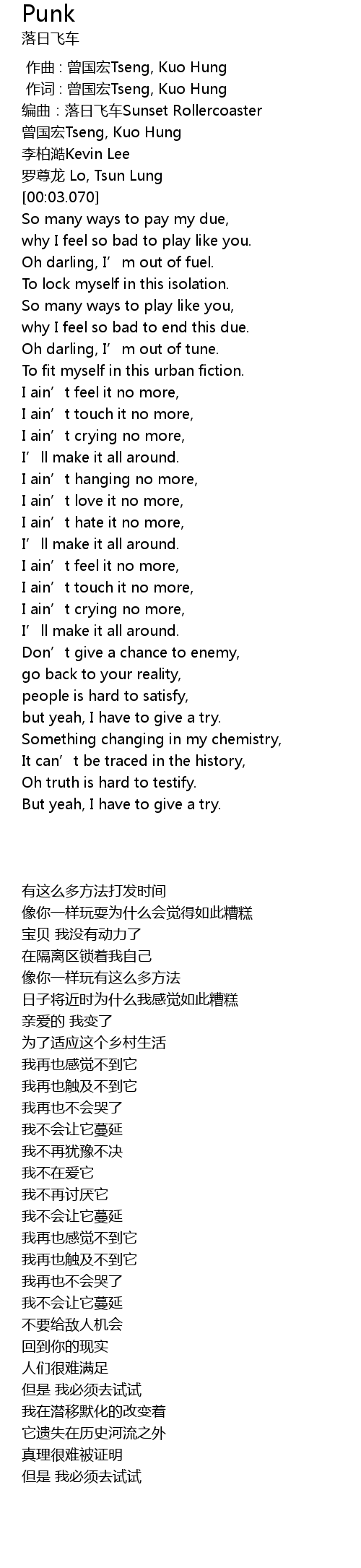 | [00:00.790] | bian qu: luo ri fei che Sunset Rollercoaster |