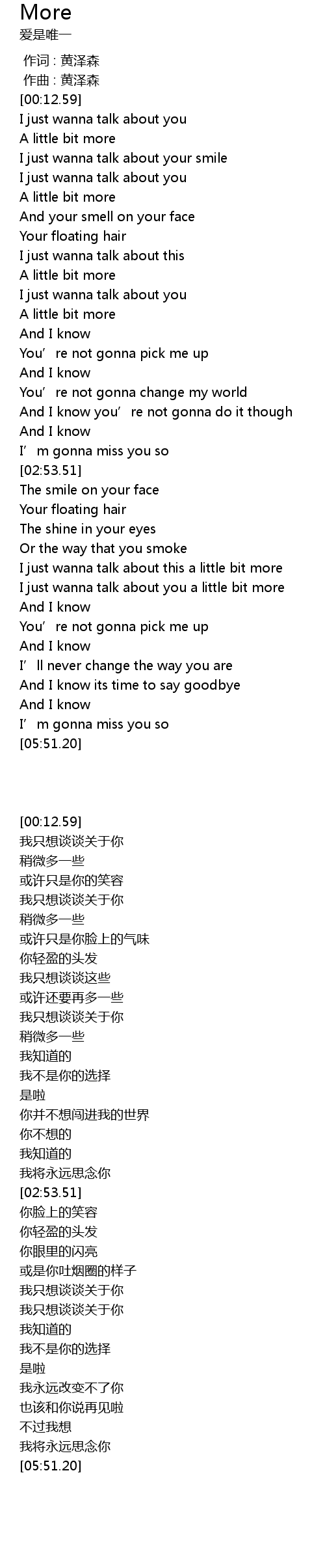 | [04:55.67] | I just wanna talk about you a little bit more |
