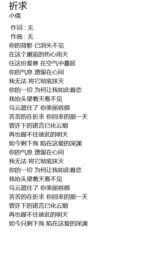 | [01:52.533] | kǔ kǔ de zài qí qiú nǐ huí lái de nà yì tiān |