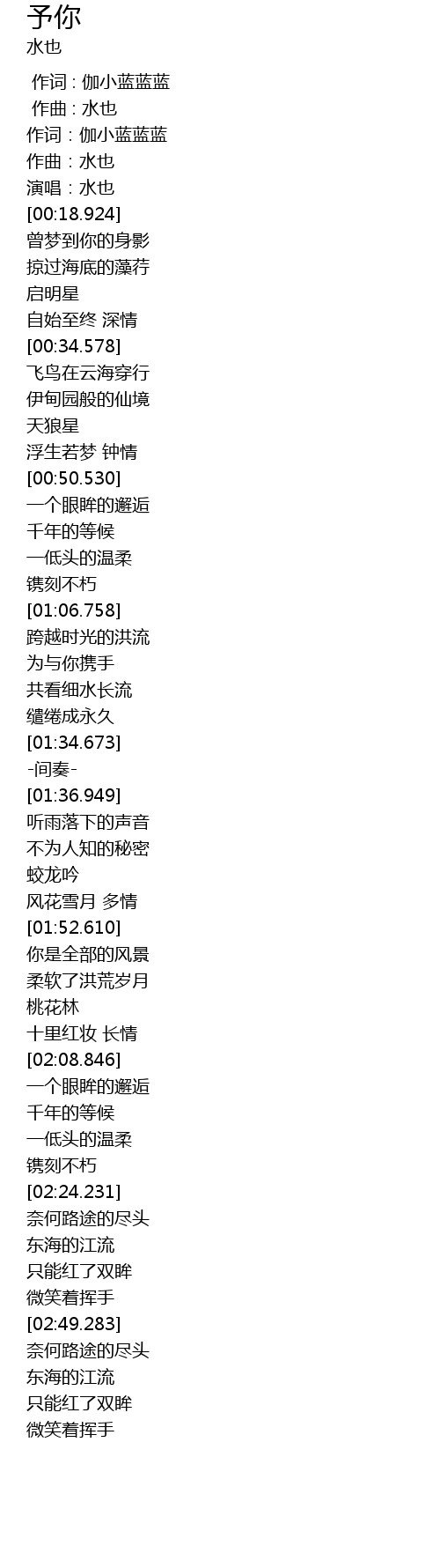 | [00:00.000] | 作词 : 伽小蓝蓝蓝 |