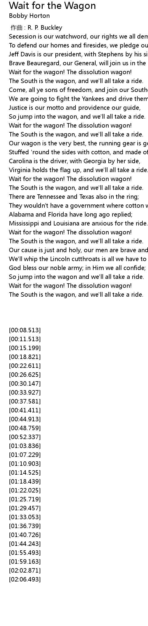 | [00:48.759] | The South is the wagon, and we' ll all take a ride. |