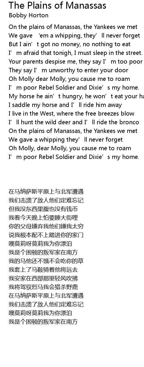 | Song | The Plains of Manassas |