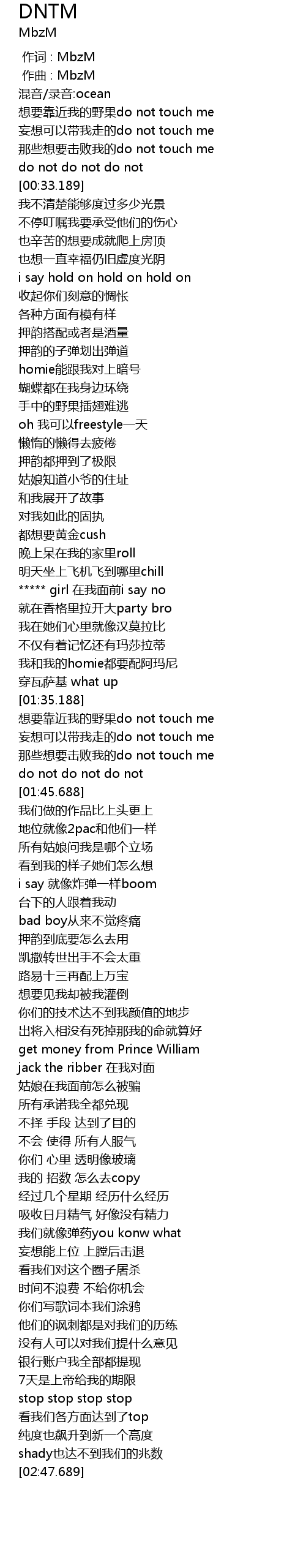 | [00:29.438] | nei xie xiang yao ji bai wo de do not touch me |