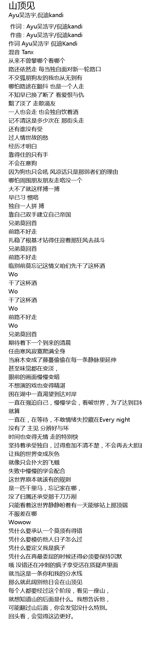 | [00:00.00] | 作词 : Ayu吴浩宇/侃迪kandi |