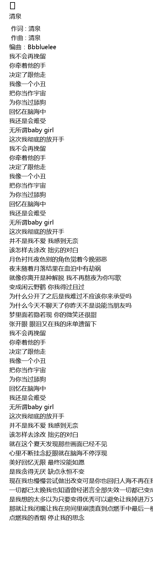| [00:00.000] | 作词 : 清泉 |