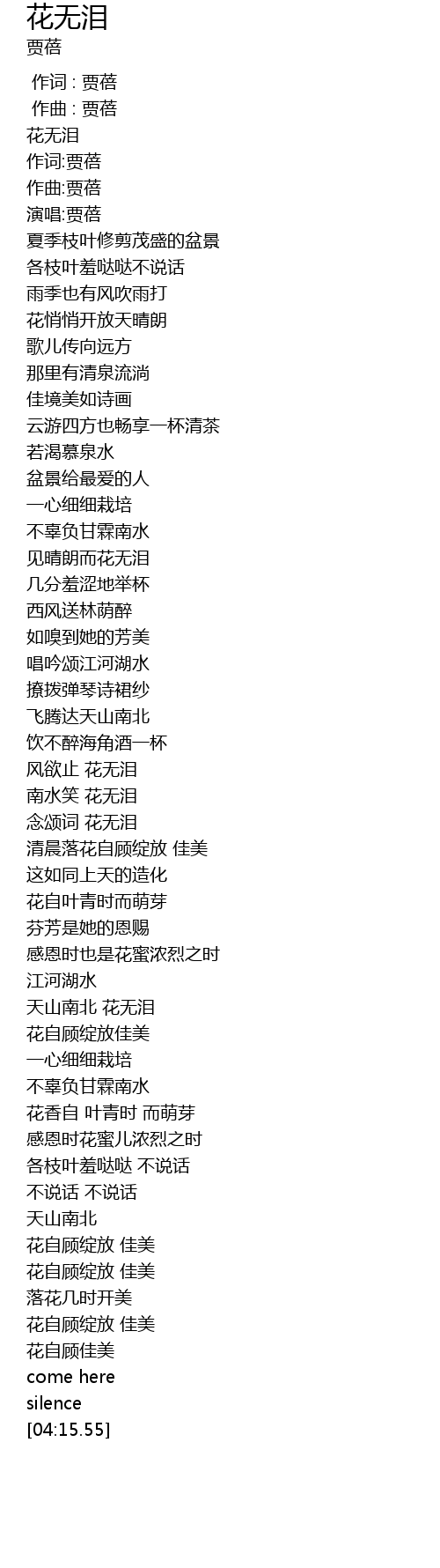 | [01:44.81] | nán shuǐ xiào huā wú lèi |