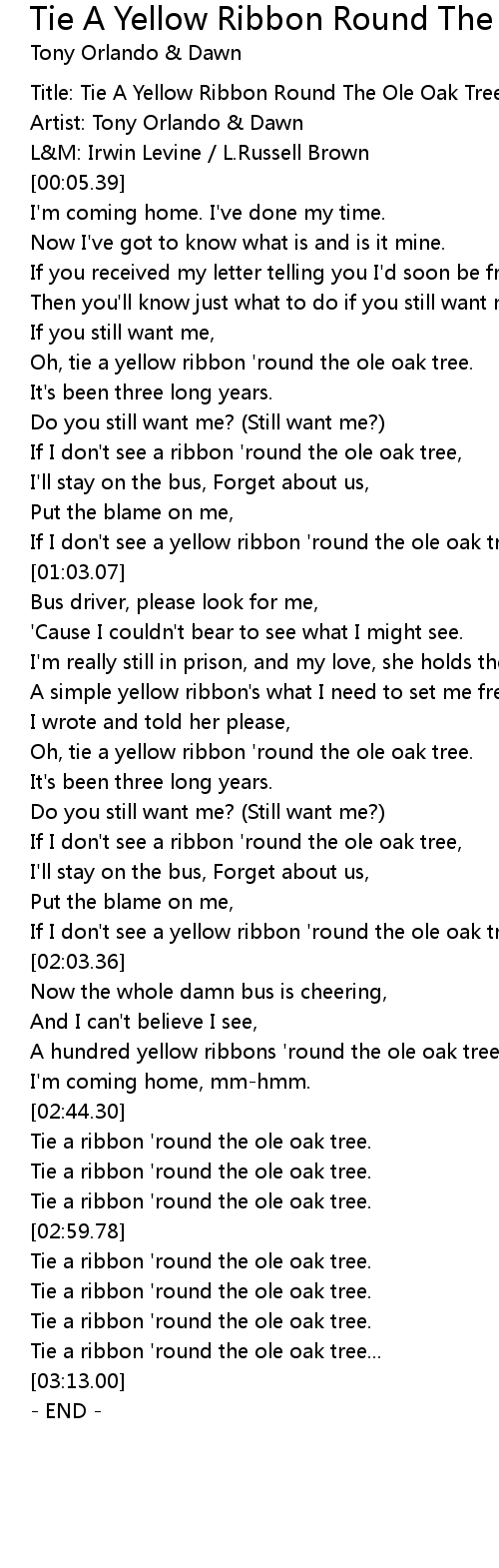 Title: Tie A Yellow Ribbon Round The Ole Oak Tree |