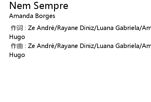 | [00:00.00-1] | 作词 : Ze André/Rayane Diniz/Luana Gabriela/Amanda Borges/Vittor Hugo |