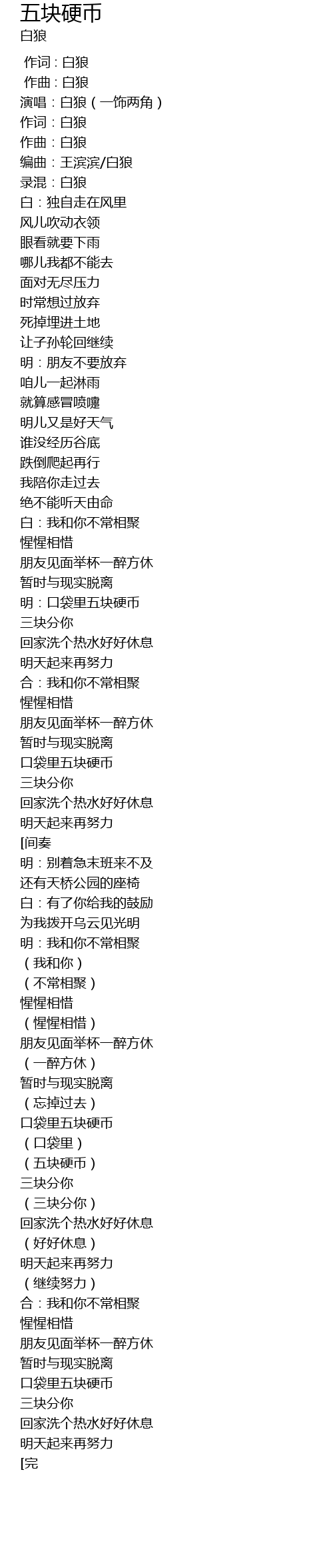 | [03:30.92] | kǒu dài lǐ wǔ kuài yìng bì |