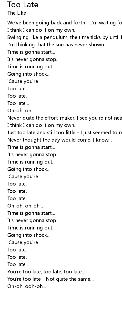 Too late, |