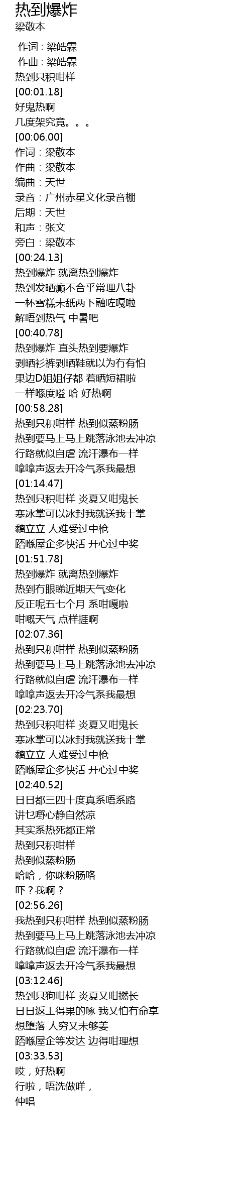 | [00:58.43] | 热到只积咁样 热到似蒸粉肠 |