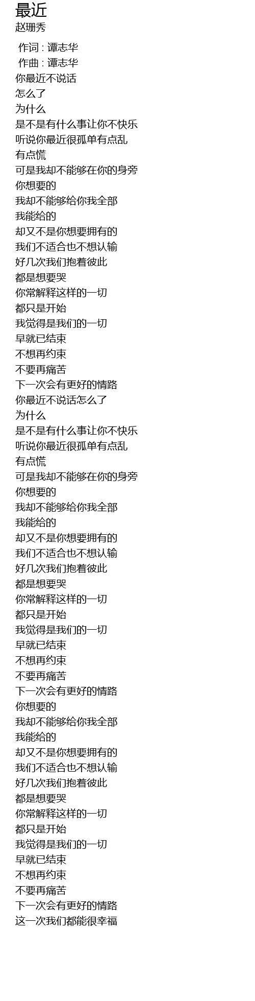 | [01:16.451] | ni zui jin bu shuo hua zen me le |