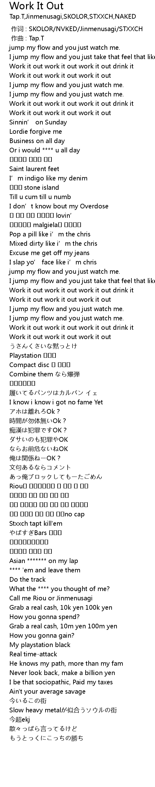 | [00:39.613] | Work it out work it out work it out |