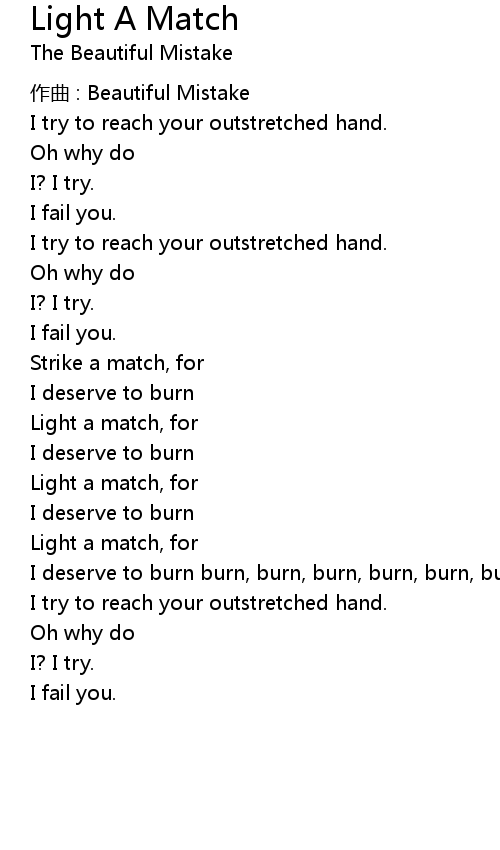| Album | Light A Match, For I Deserve To Burn |