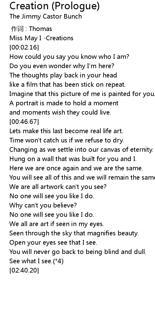 | [00:58.99] | Changing as we settle into our canvas of eternity. |