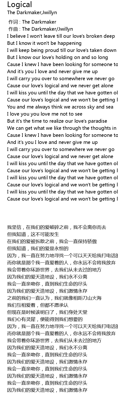 | [00:33.855] | Cause our love' s logical and we never get alone |