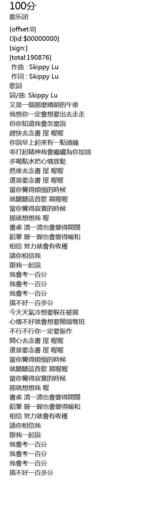| [02:42.696] | 我會考一百分 |