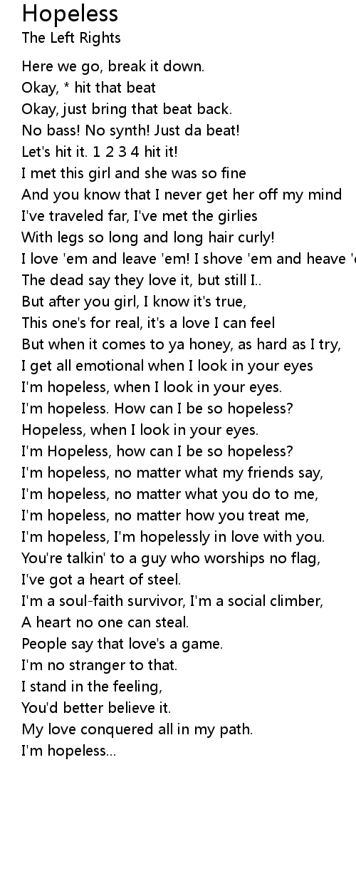 I'm Hopeless, how can I be so hopeless? |