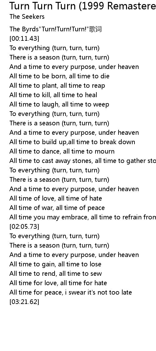 | [02:43.67] | To everything turn, turn, turn |