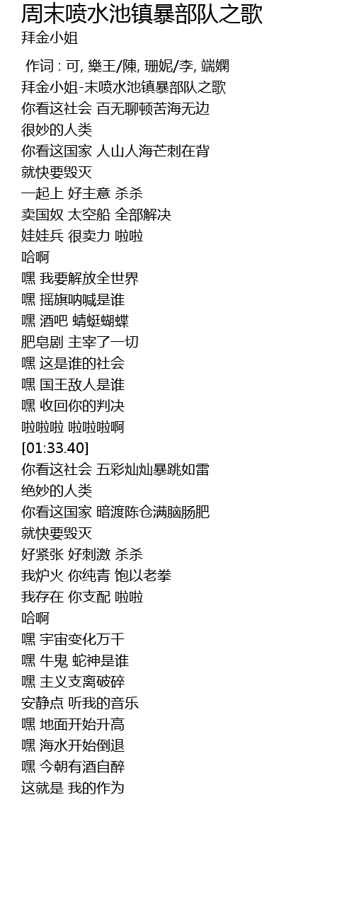 | [00:02.35] | 拜金小姐-末喷水池镇暴部队之歌 |