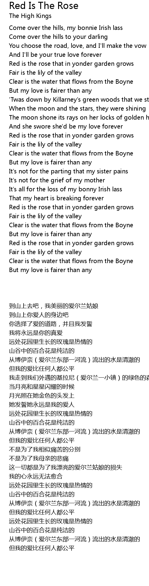 Red is the rose that in yonder garden grows |