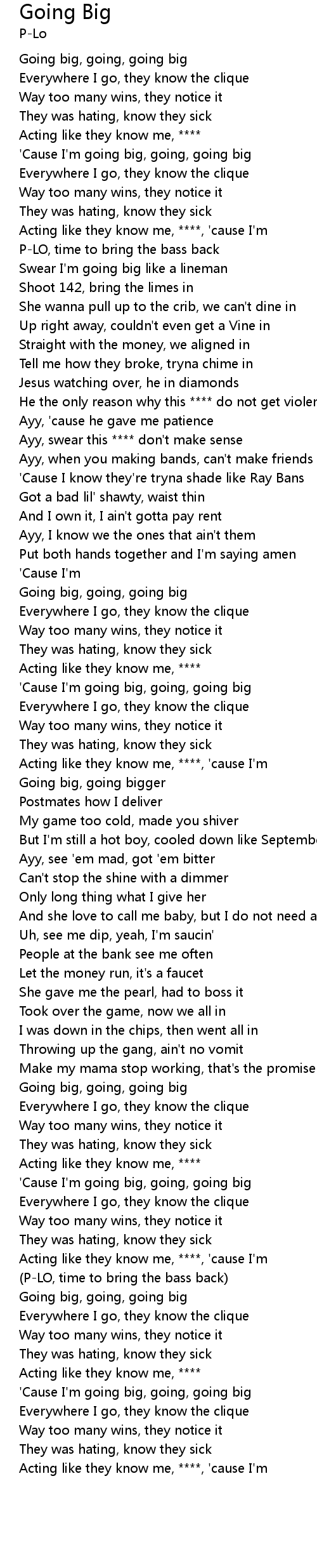 | [00:09.89] | 'Cause I'm going big, going, going big |