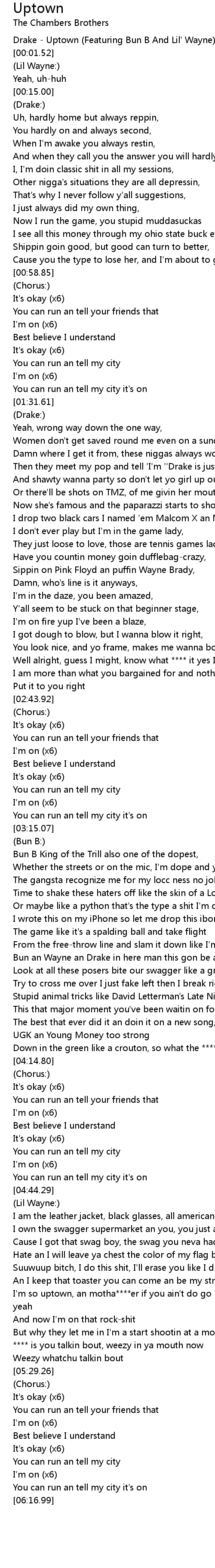 Drake - Uptown (Featuring Bun B And Lil' Wayne) |