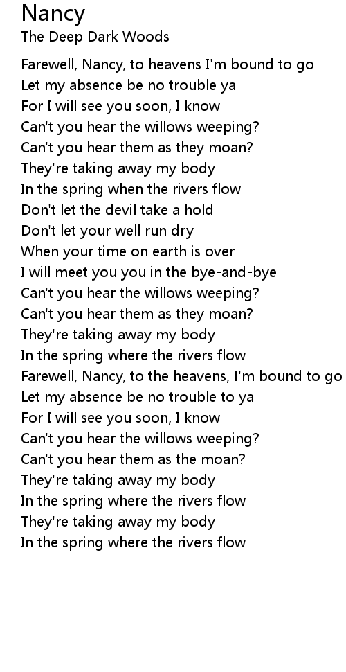 Farewell, Nancy, to the heavens, I'm bound to go |