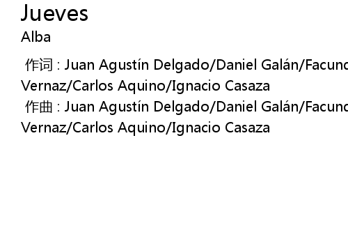 | [00:00.00-1] | zuò cí : Juan Agustí n Delgado Daniel Galá n Facundo Vallone Axel Vernaz Carlos Aquino Ignacio Casaza |