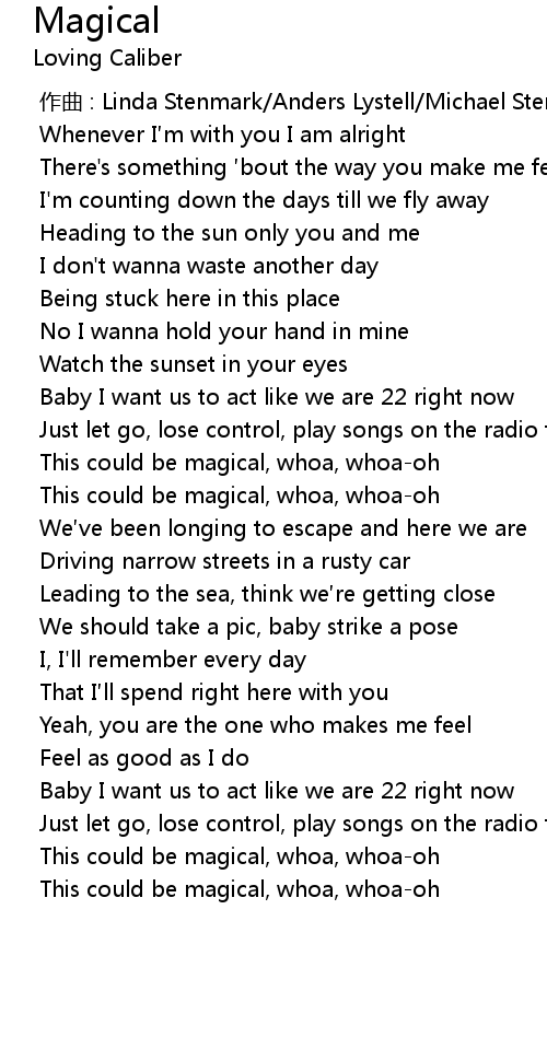 | [02:19.118] | This could be magical, whoa, whoa-oh |