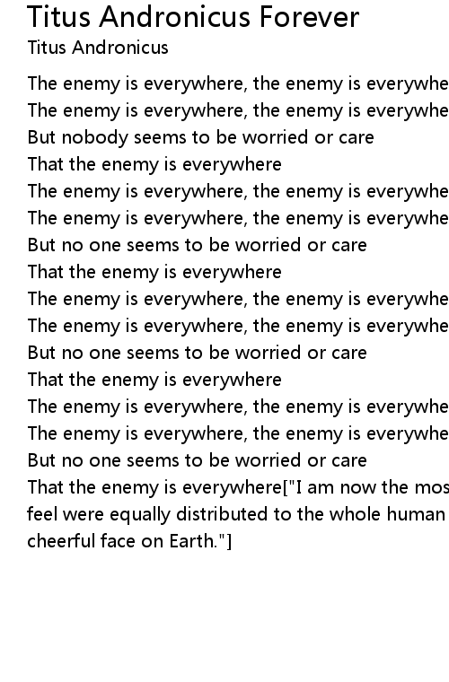 That the enemy is everywhere["I am now the most miserable man living. If what I feel were equally distributed to the whole human family, there would not be one cheerful face on Earth."]