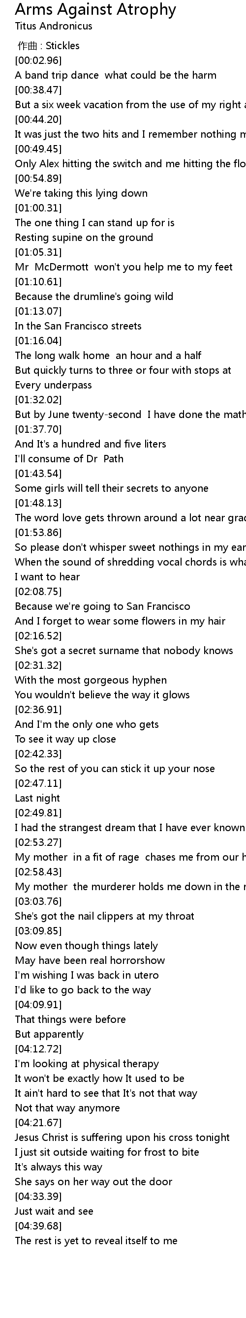 | [00:39.52] | But a six week vacation from the use of my right arm |
