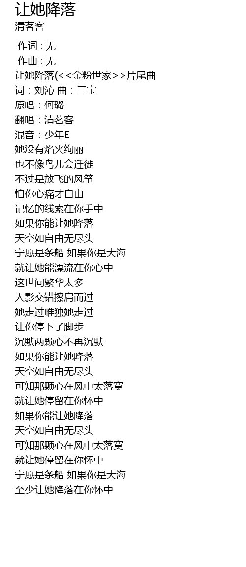 | [00:03.39] | 让她降落(<<金粉世家>>片尾曲 |